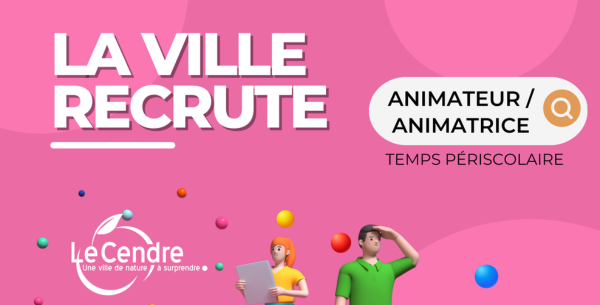 La Ville du Cendre recrute un animateur / animatrice des temps périscolaires, en CDD d'un an, à temps non complet.